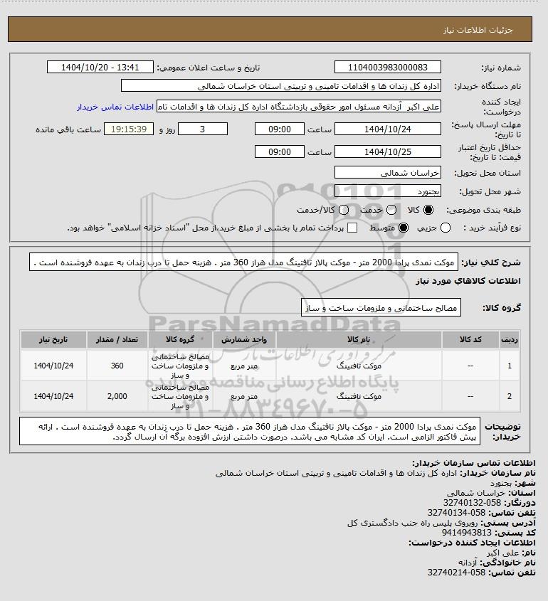 نام دستگاه خریدار:اداره کل زندان ها و اقدامات تامینی و تربیتی استان خراسان شمالی
