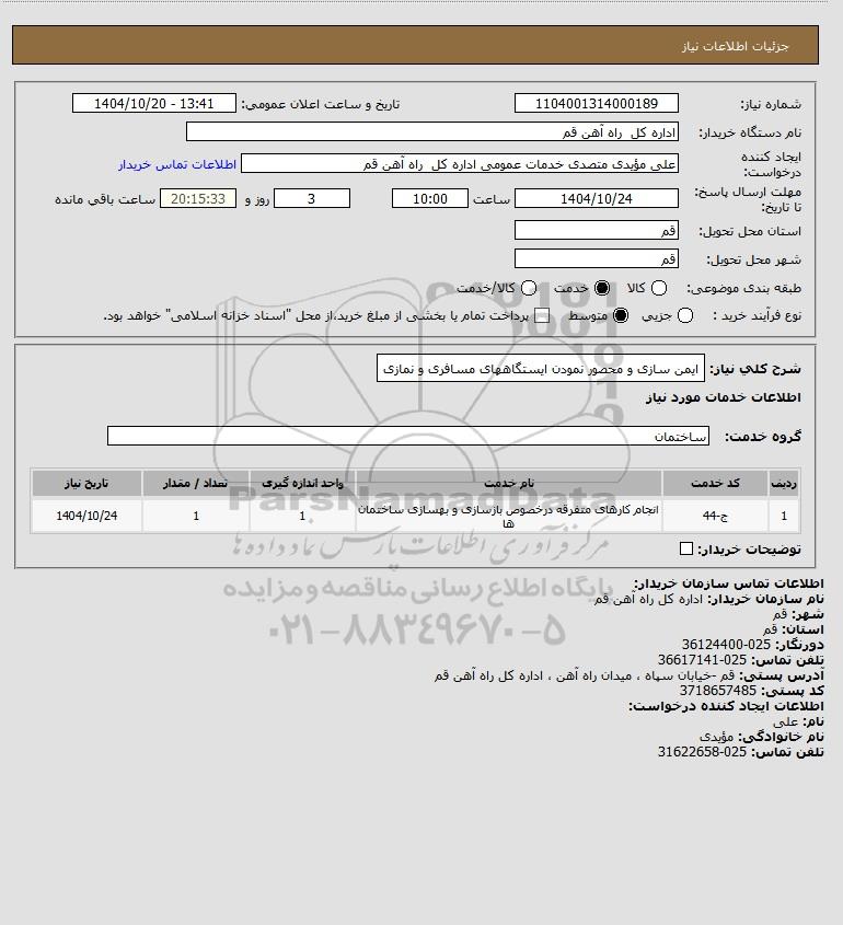 شرح کلی نیاز: ایمن سازی و محصور نمودن ایستگاههای مسافری و نمازی