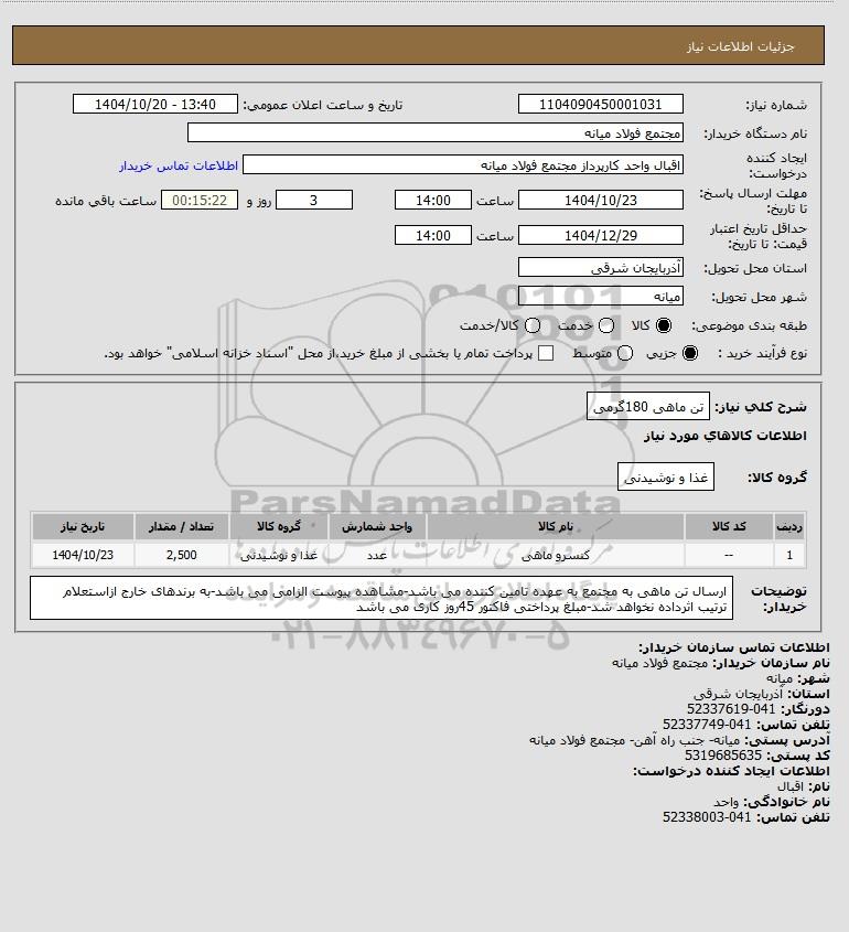 توضیحات خریدار:ارسال تن ماهی به مجتمع به عهده تامین کننده می باشد-مشاهده پیوست الزامی می باشد-به برندهای خارج ازاستعلام ترتیب اثرداده نخواهد شد-مبلغ پرداختی فاکتور 45روز کاری می باشد