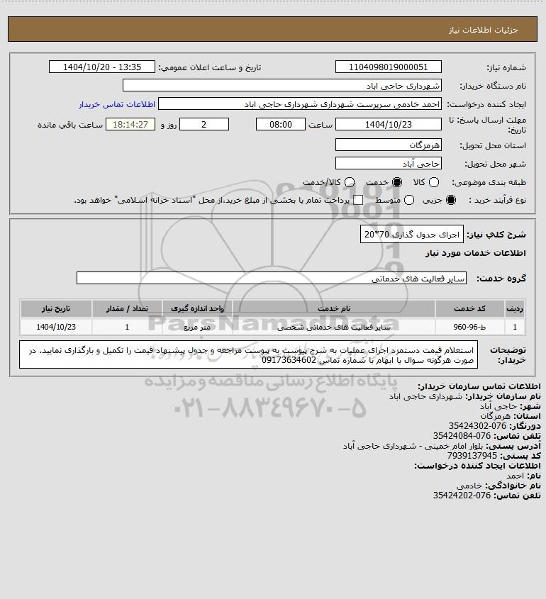 استعلام اجرای جدول گذاری 70*20, استعلام اجرای جدول گذاری 70*20