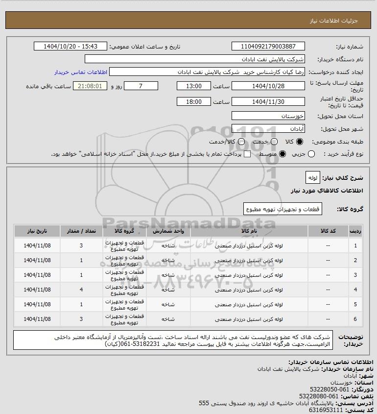 شماره نیاز: 1104092179003887