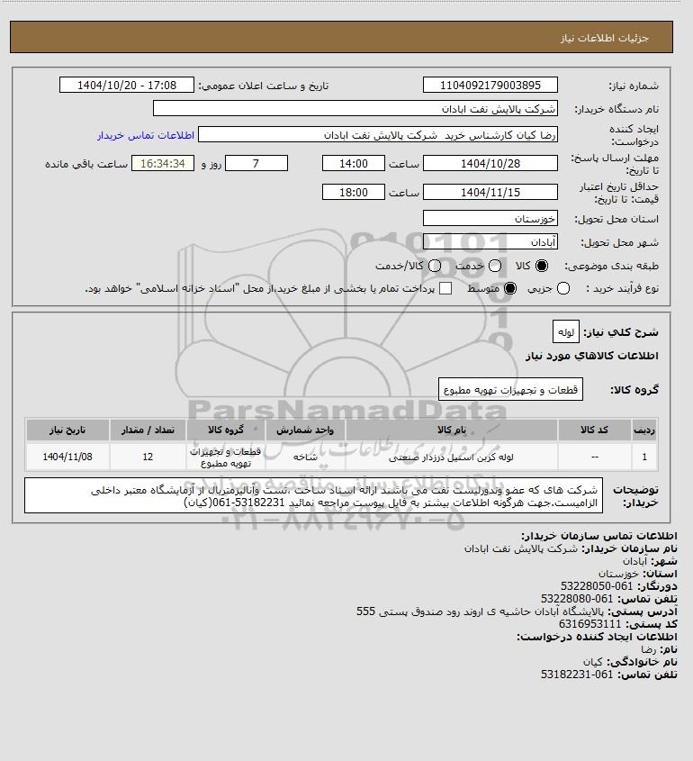 نام سازمان خریدار: شرکت پالایش نفت ابادان