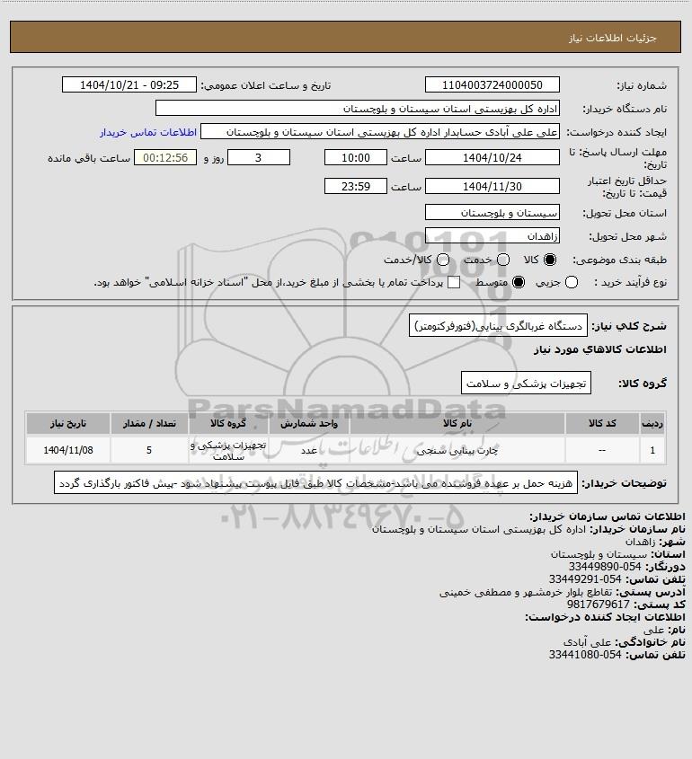 استعلام دستگاه غربالگری بینایی(فتورفرکتومتر), استعلام دستگاه غربالگری بینایی(فتورفرکتومتر)