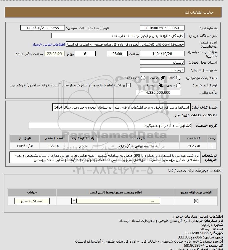 شرح کلی نیاز: استاندارد سازی، تدقیق و ورود اطلاعات اراضی ملی در سامانه پنجره واحد زمین سال 1404
