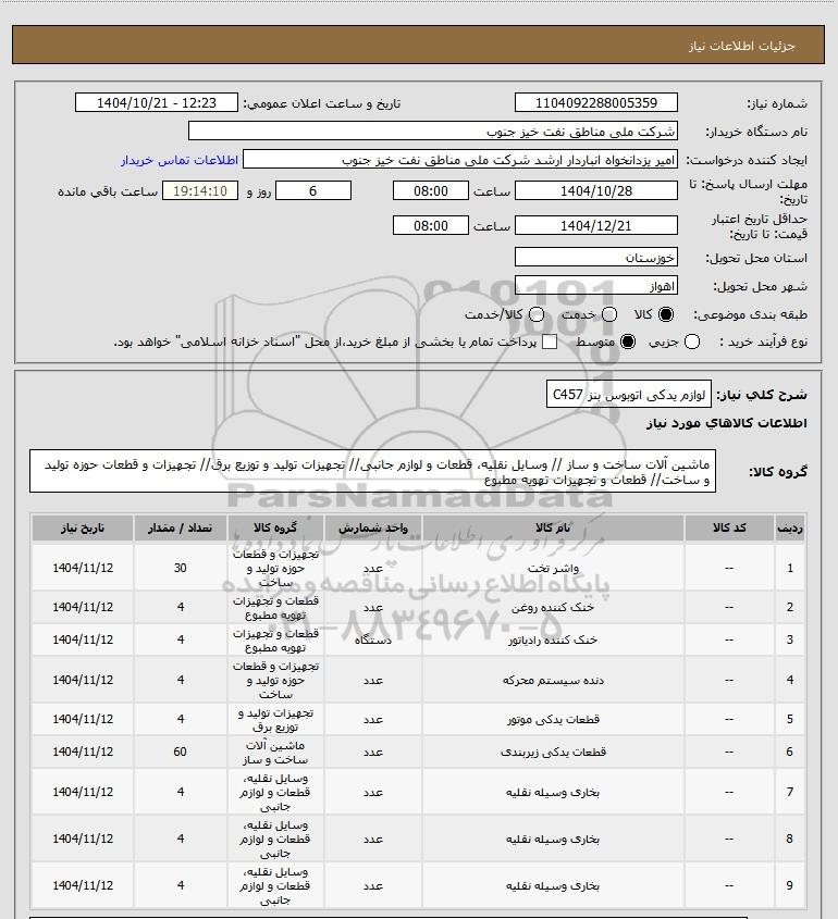 شرح کلی نیاز: لوازم یدکی اتوبوس بنز C457
