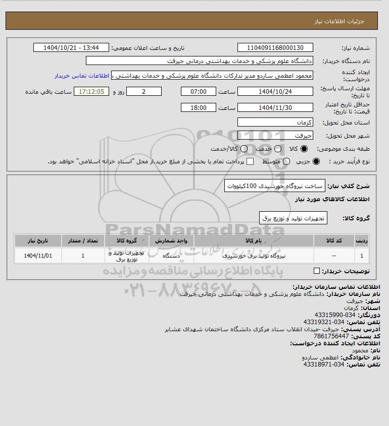| 1 | -- | نیروگاه تولید برق خورشیدی | دستگاه | تجهیزات تولید و توزیع برق | 1 | 1404/11/01 |