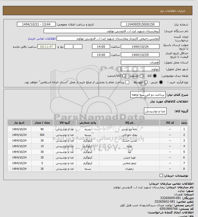 شرح کلی نیاز: پرداخت دو الی سه ماهه
