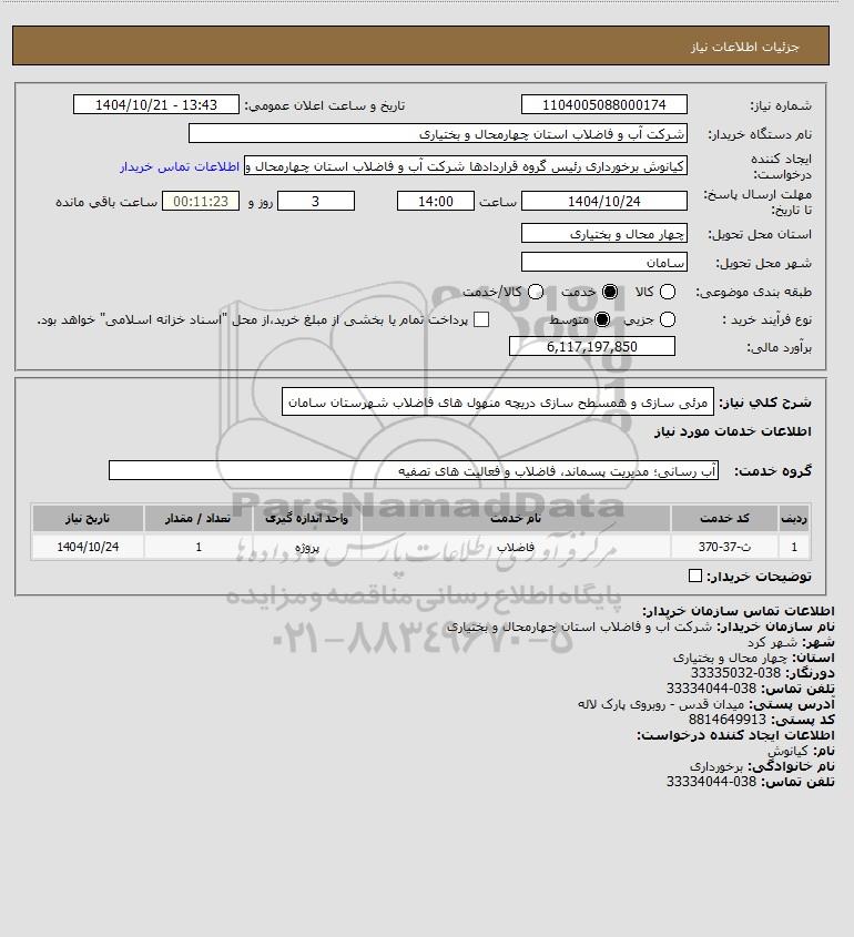 نام دستگاه خریدار:شرکت آب و فاضلاب استان چهارمحال و بختیاری