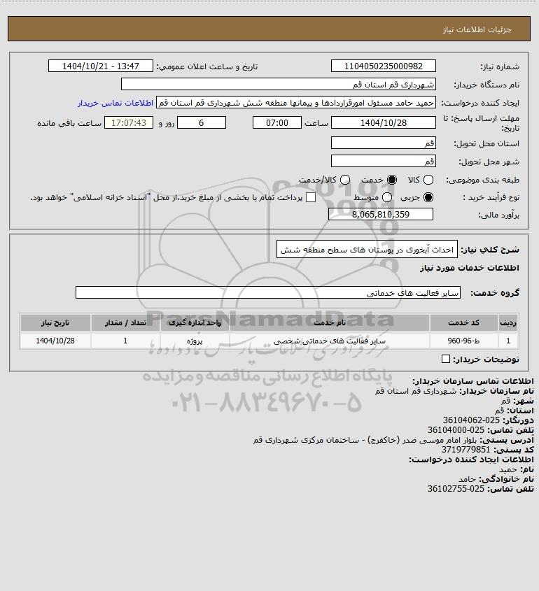 استعلام بها و موضوع استعلام استعلام احداث آبخوری در بوستان های سطح منطقه شش به اطلاع کلیه شرکتها و افراد متخصص واجد شرایط میرساند، آگهی گذار در نظر دارد از طریق استعلام بها، نسبت به انتخاب و دریافت پیشنهادات اقدام نماید. این استعلام با کد آگهی ثبت شده در سامانه خبرگزاری پارس نماد : 10125850 منتشر شده است. مشخصات استعلام : تاریخ شروع استعلام: 1404/10/21 آخرین مهلت ارسال پیشنهاد قیمت : 1404/10/28 و محل اجرای پروژه : استان مناقصات استان قم میباشد. استعلام قیمت مورد درخواست : استعلام احداث آبخوری در بوستان های سطح منطقه شش با دستهبندیهای تخصصی و گروه های مرتبط : پیمانکاری آب و فاضلاب, ساختمان, استعلام اطلاع رسانی میگردد.