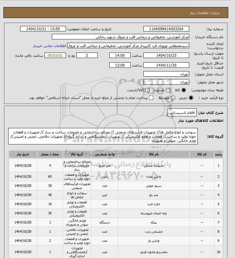 نام دستگاه خریدار:مرکز آموزشی، تحقیقاتی و درمانی قلب و عروق شهید رجائی