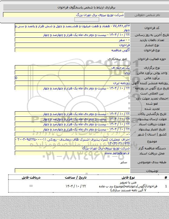 اجرای عملیات کنترل پذیری اشترک های دیماندی - رودکی ۲۰۰۴۰۹۵۲۴۵۰۰۰۰۱۱ - ۱۴۰۴۲۰۴۱۱۹۳۸