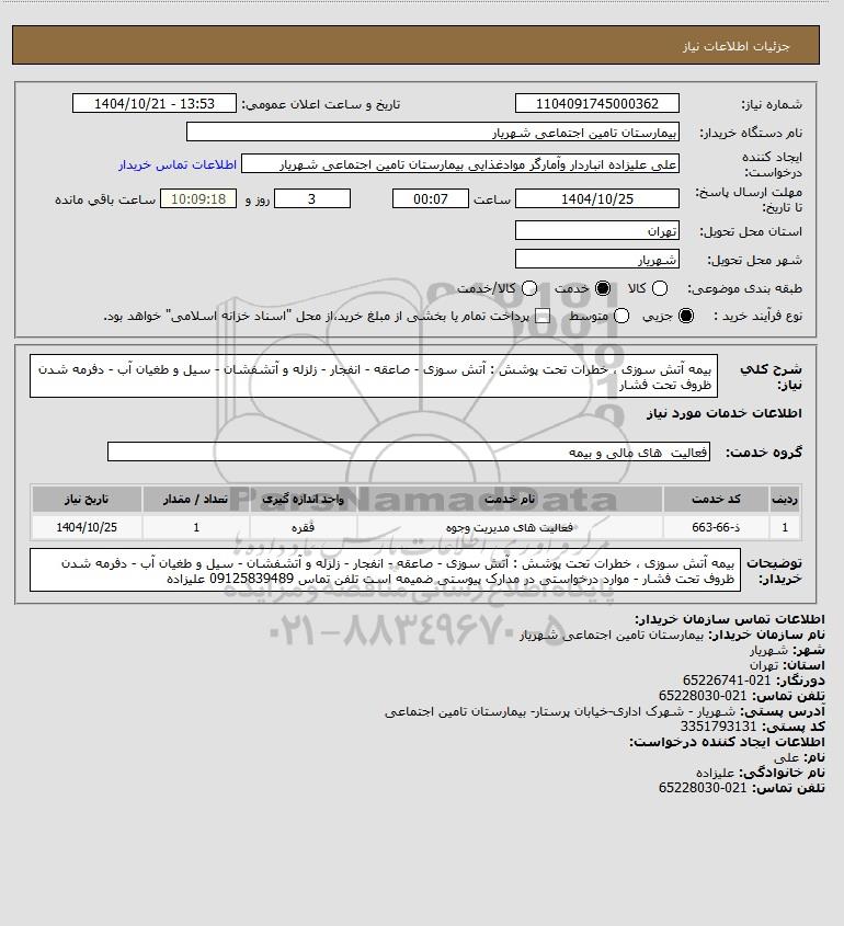 نام دستگاه خریدار:بیمارستان تامین اجتماعی شهریار