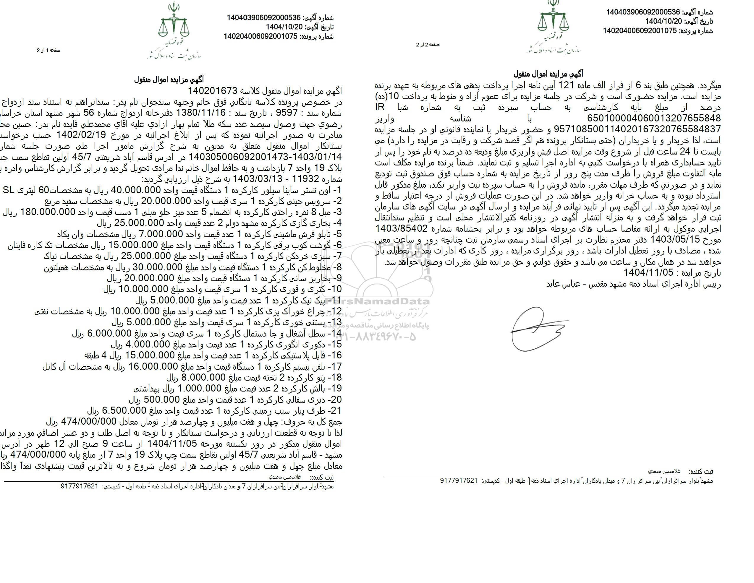 آگهی مزایده مورد وثیقه کلاسه 140201673
