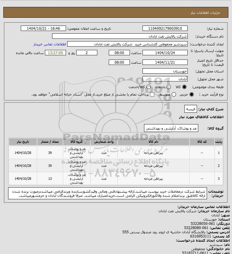 شماره نیاز: 1104092179003910