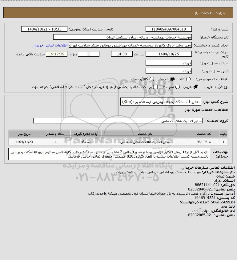 نام دستگاه خریدار:موسسه خدمات بهداشتی درمانی میلاد سلامت تهران