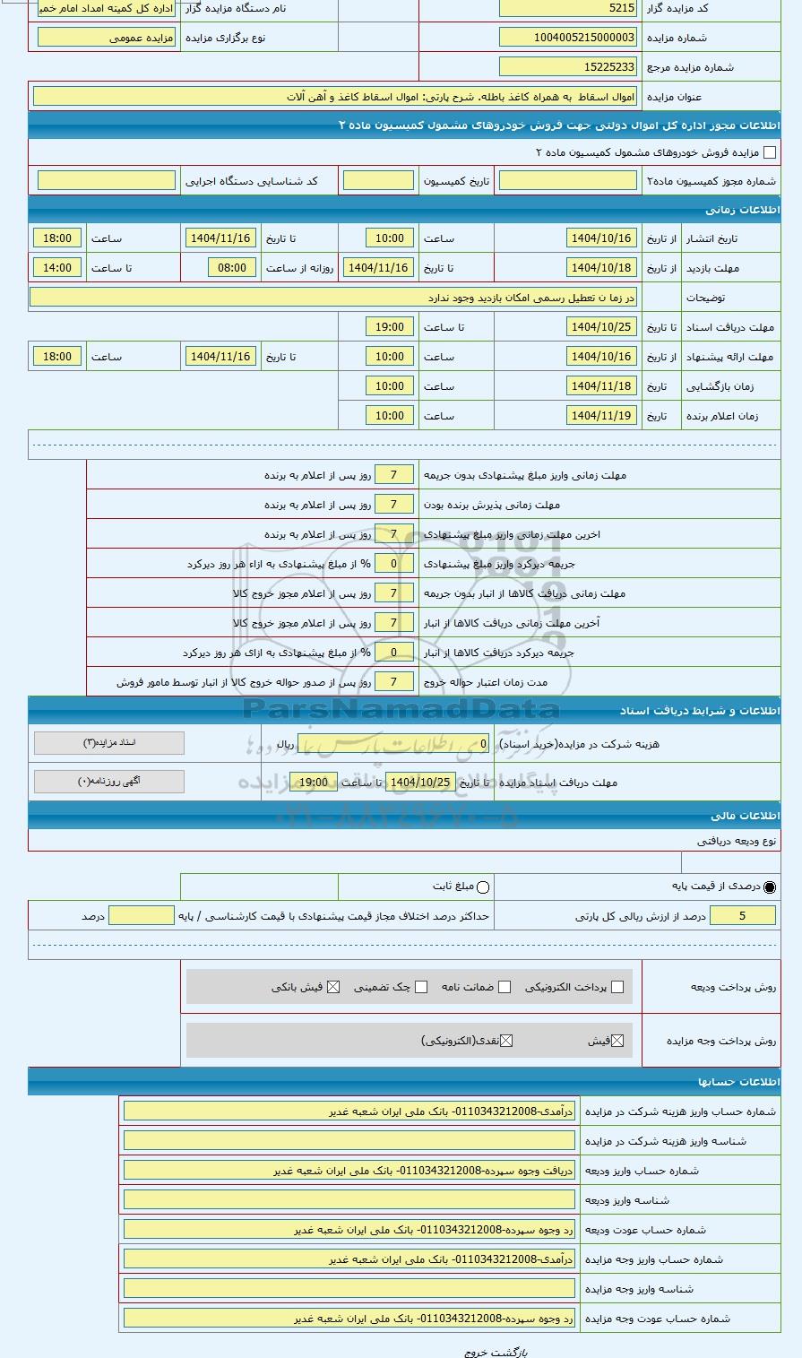 شماره پارتی1104005215000004نوع برگزاری مزایده مزایده عمومی