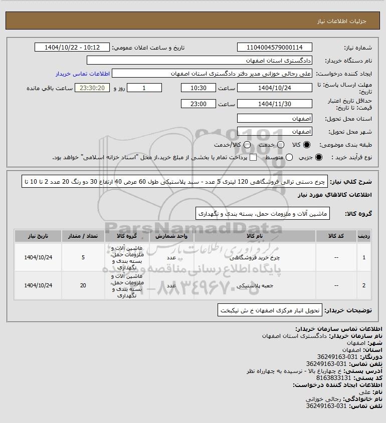 نام دستگاه خریدار:دادگستری استان اصفهان