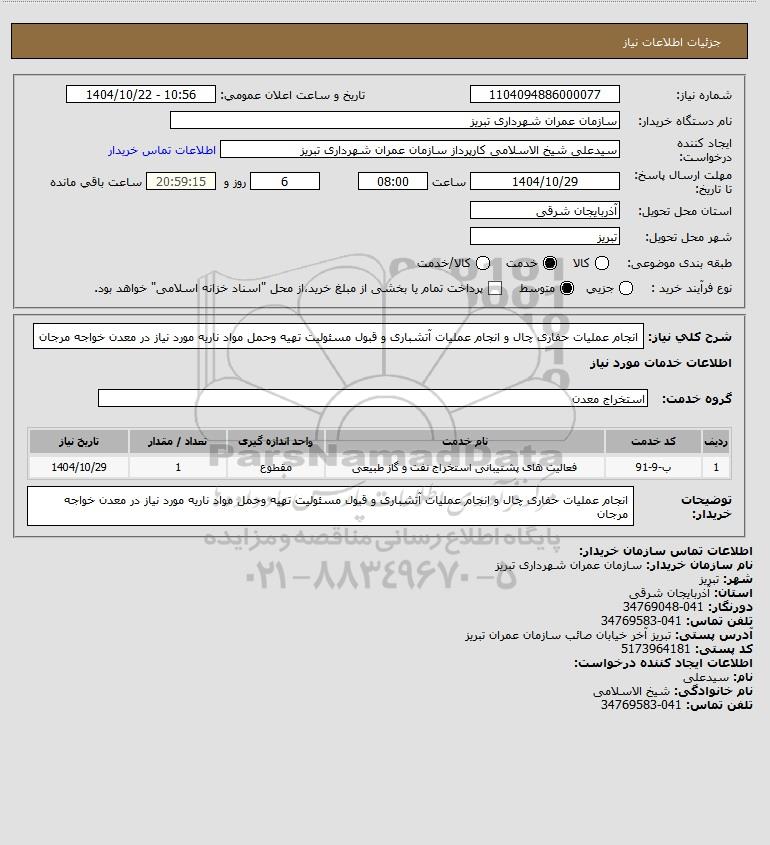 توضیحات خریدار:انجام عملیات حفاری چال و انجام عملیات آتشباری و قبول مسئولیت تهیه وحمل مواد ناریه مورد نیاز در معدن خواجه مرجان