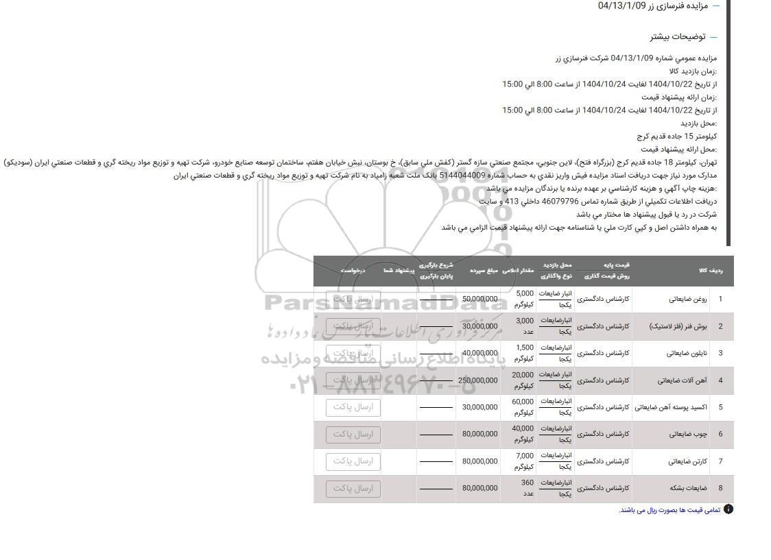 - مزایده فنرسازی زر  04.13.1.09