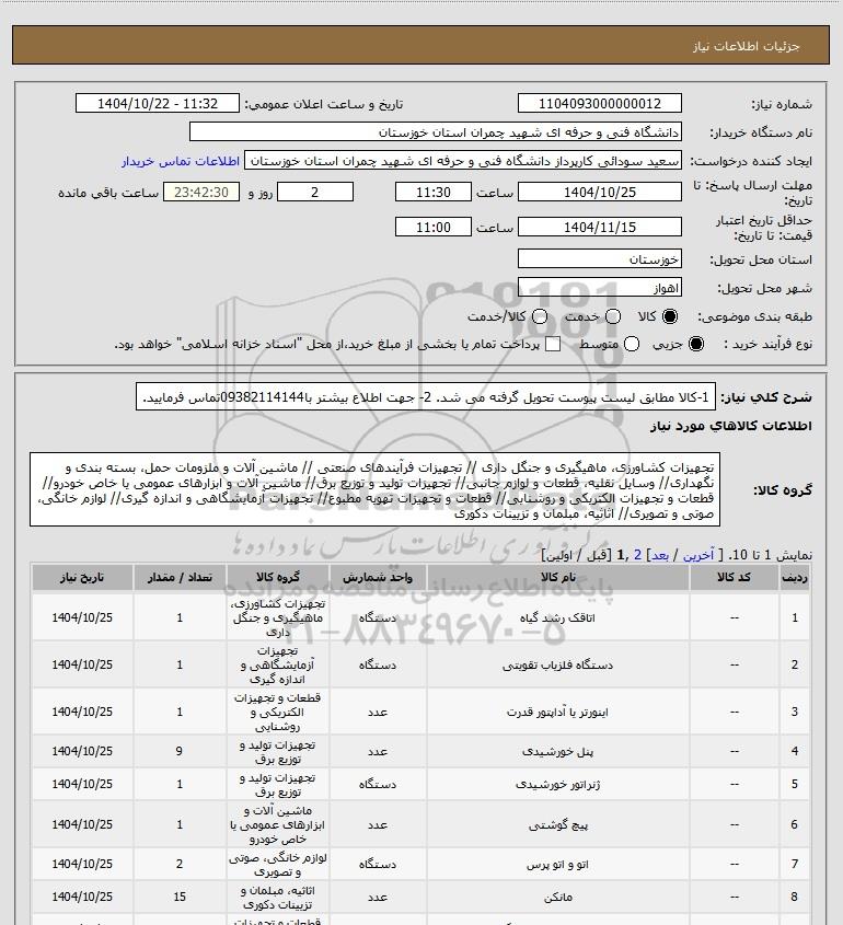 نام دستگاه خریدار:دانشگاه فنی و حرفه ای شهید چمران استان خوزستان