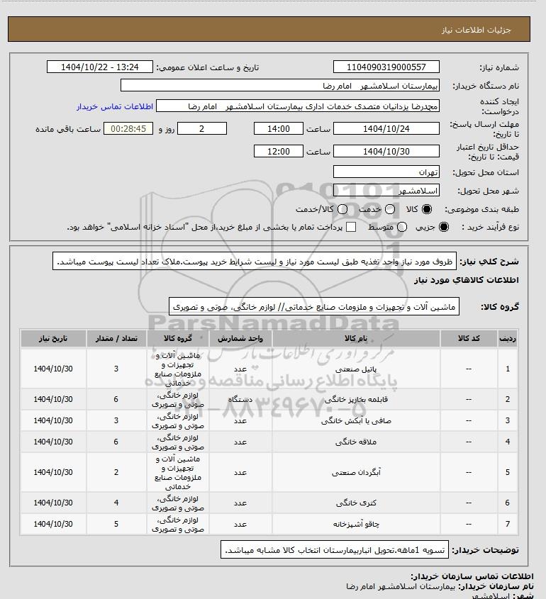 نام دستگاه خریدار:بیمارستان اسلامشهر امام رضا