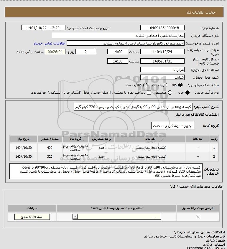 1 -- کیسه زباله بیمارستانی عدد تجهیزات پزشکی و سلامت 400 1404/10/30