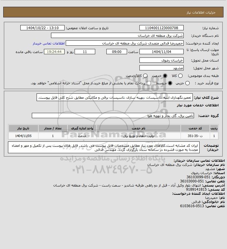 نام دستگاه خریدار:شرکت برق منطقه ای خراسان
