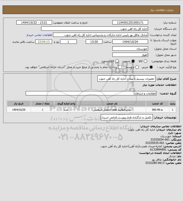 نام دستگاه خریدار:اداره کل راه اهن جنوب