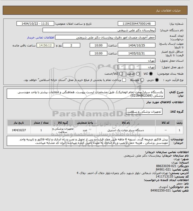 نام دستگاه خریدار:بیمارستان دکتر علی شریعتی