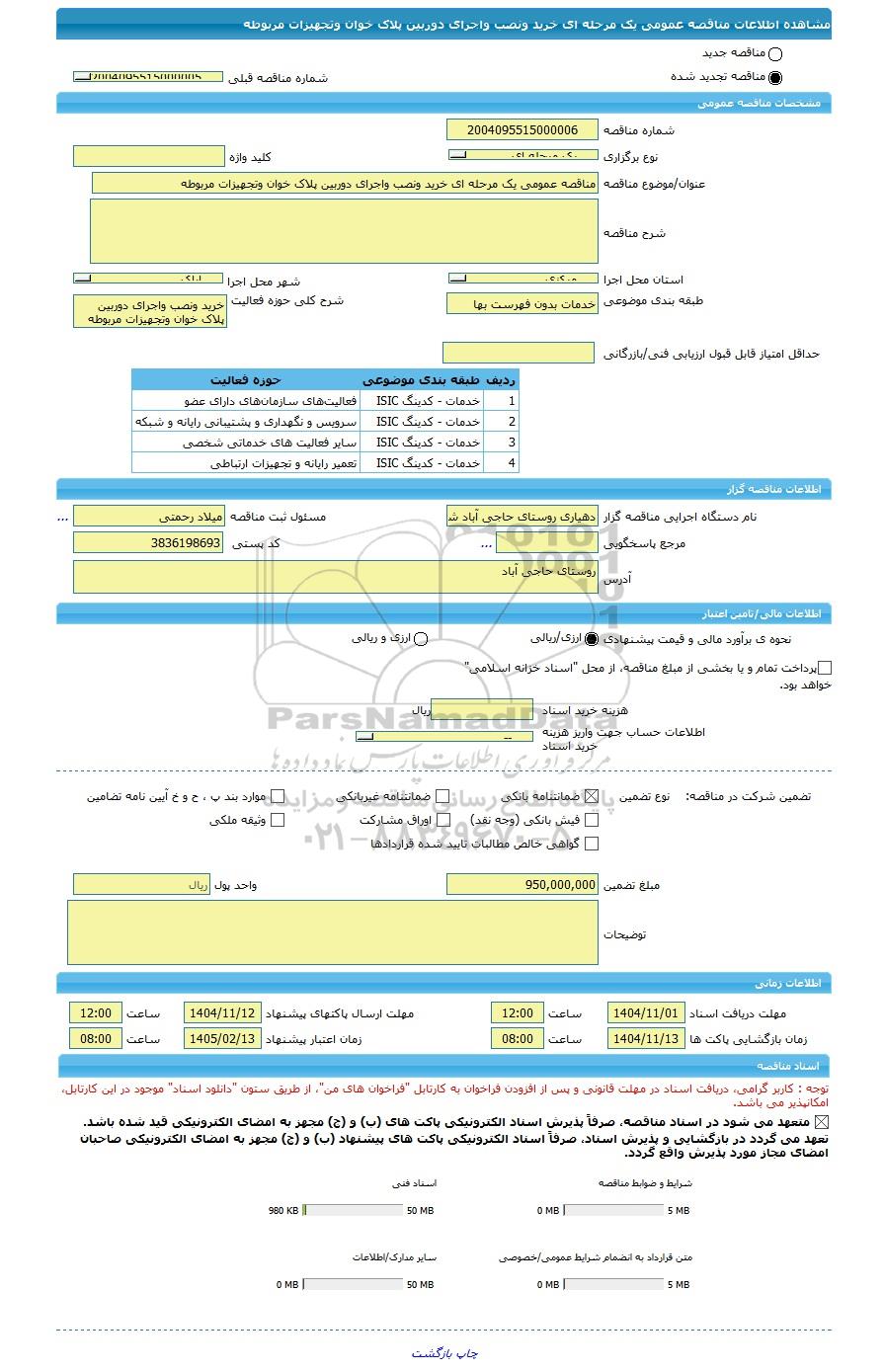 مبلغ تضمین950,000,000واحد پولریال