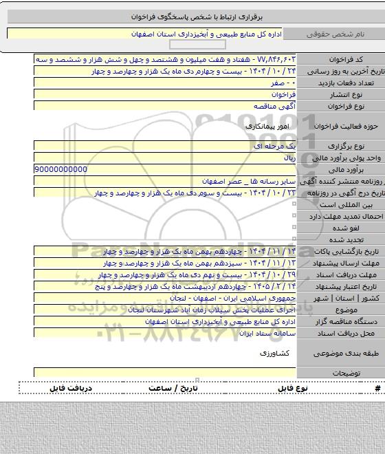 مناقصه اجرای عملیات پخش سیلاب زمان آباد شهرستان لنجان, مناقصه, اجرای عملیات پخش سیلاب زمان آباد شهرستان لنجان