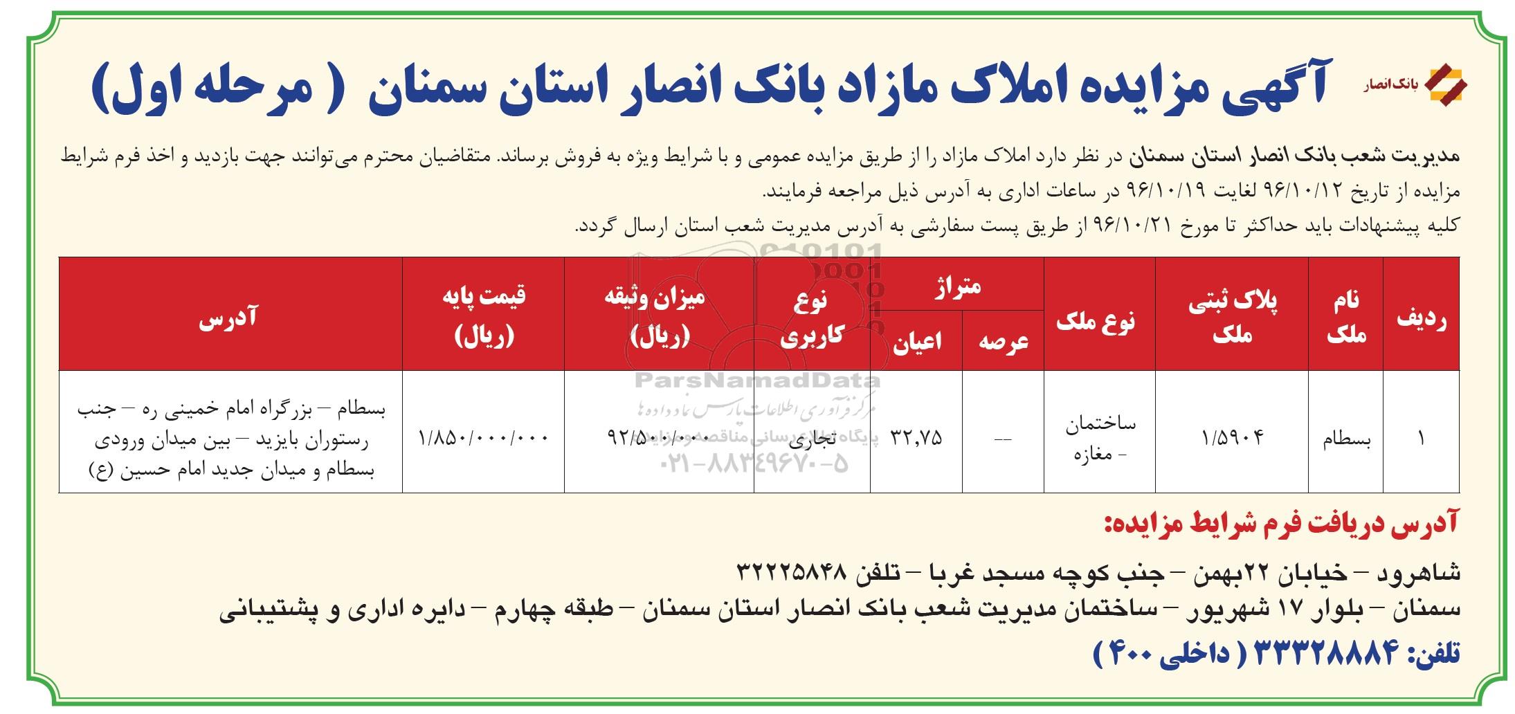 مزایده فروش املاک کاربری تجاری اعیان 32.75متر