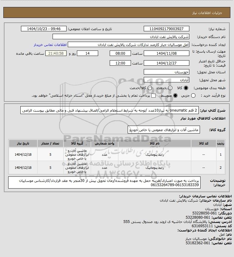 استعلام 2 قلم pneumatic به تیراژ10عدد /توجه به شرایط استعلام الزامی/الصاق پیشنهاد فنی و مالی مطابق پیوست الزامی, استعلام 2 قلم pneumatic به تیراژ10عدد /توجه به شرایط استعلام الزامی/الصاق پیشنهاد فنی و مالی مطابق پیوست الزامی