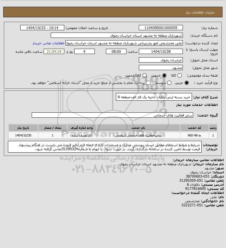 نام دستگاه خریدار:شهرداری منطقه نه مشهد استان خراسان رضوی