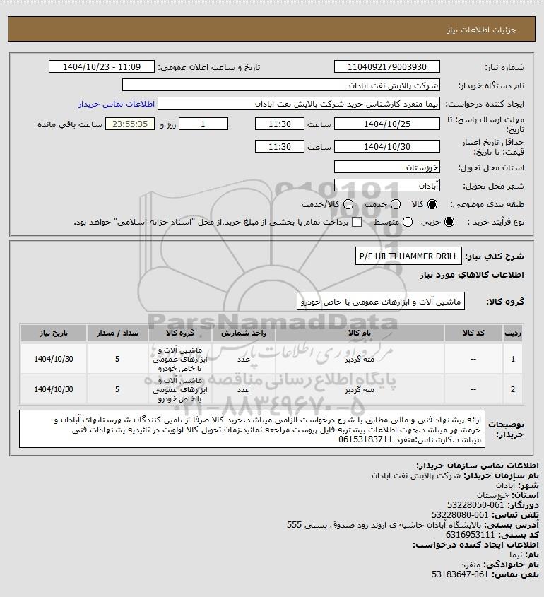 شرح کلی نیاز: P/F HILTI HAMMER DRILL
