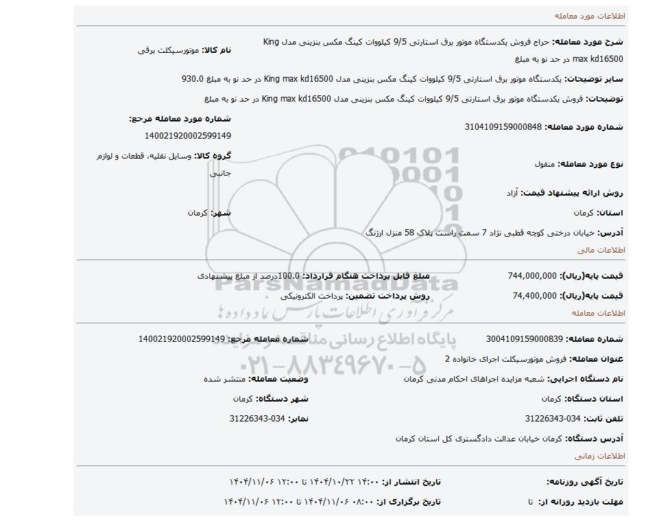 | عنوان معامله: فروش موتورسیکلت اجرای خانواده 2 | ||