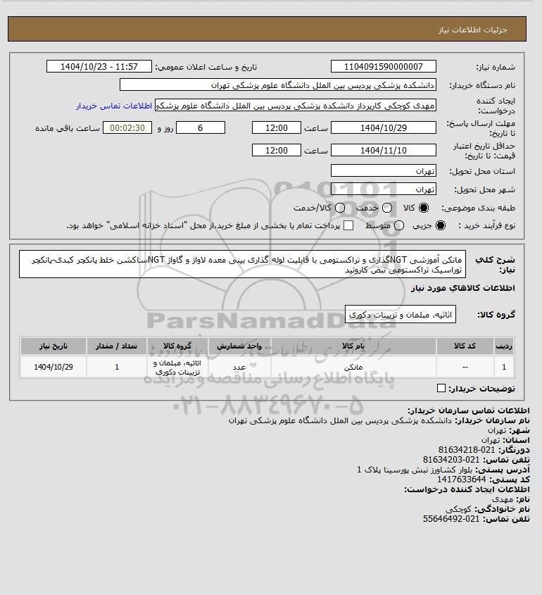 نام دستگاه خریدار:دانشکده پزشکی پردیس بین الملل دانشگاه علوم پزشکی تهران