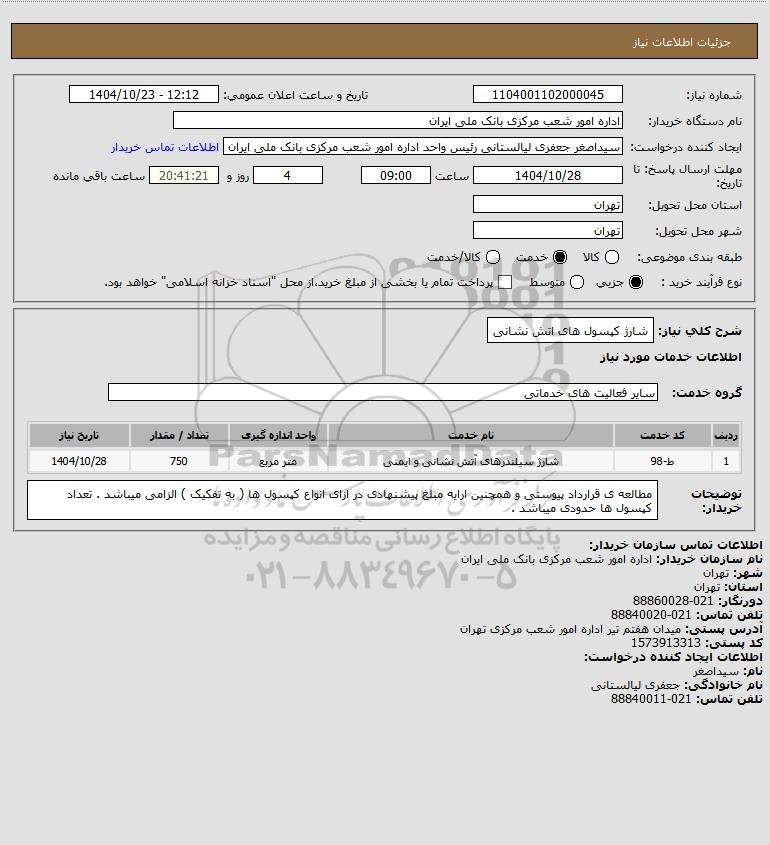 شرح کلی نیاز: شارژ کپسول های اتش نشانی