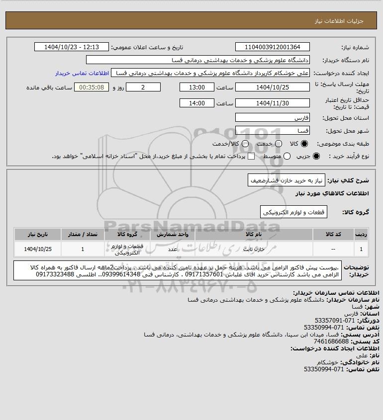 نام دستگاه خریدار:دانشگاه علوم پزشکی و خدمات بهداشتی درمانی فسا