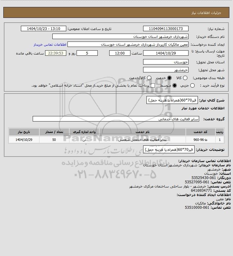 شرح کلی نیاز: قیر70*60(همراه با هزینه حمل)