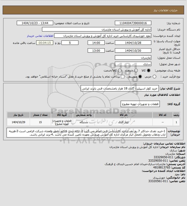 نام دستگاه خریدار:اداره کل آموزش و پرورش استان مازندران