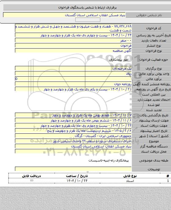 این مناقصه در تاریخ 1404/10/23 شروع و مهلت آن تا تاریخ 1404/10/24 میباشد.