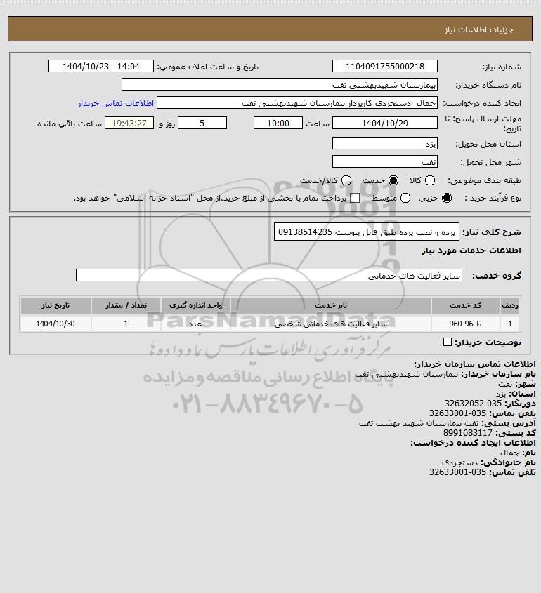 شرح کلی نیاز: پرده و نصب پرده طبق فایل پیوست