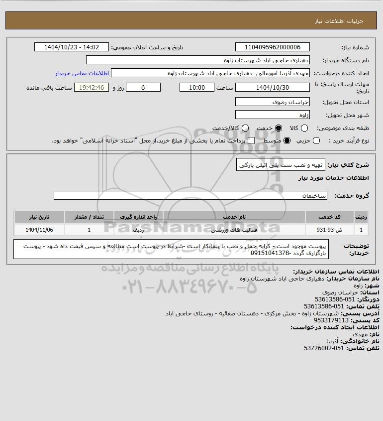 شرح کلی نیاز: تهیه و نصب ست پلی اتیلن پارکی