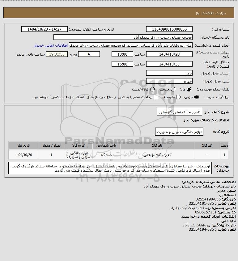 شرح کلی نیاز: تامین بخاری نفتی گازوییلی