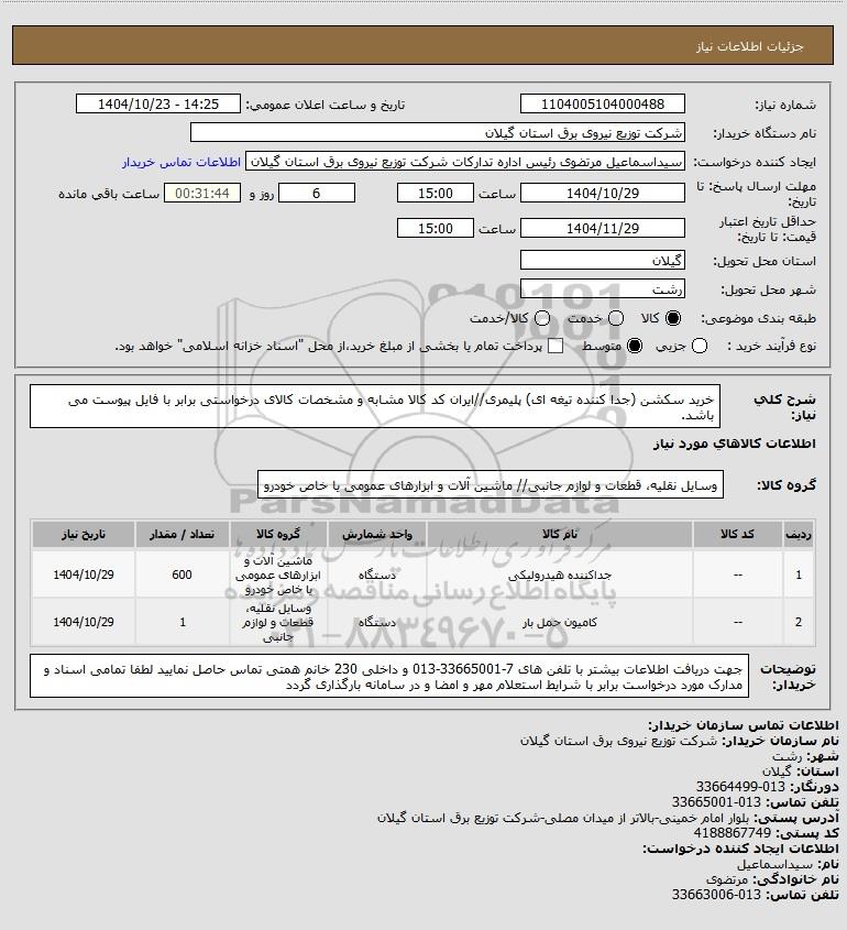 نام دستگاه خریدار:شرکت توزیع نیروی برق استان گیلان