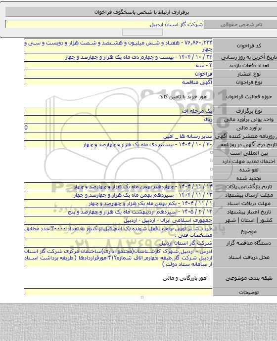 این مناقصه در استان مناقصات استان اردبیل با دسته بندی های صنفی و تخصصی شیرآلات, تجهیزات نفت و گاز برگزار میشود.