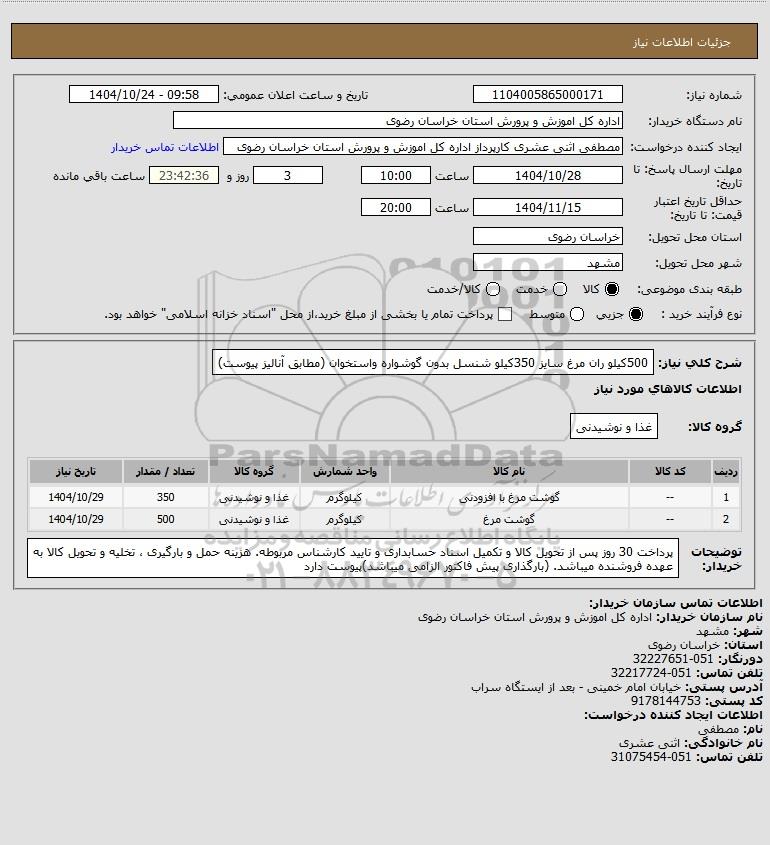نام دستگاه خریدار:اداره کل اموزش و پرورش استان خراسان رضوی