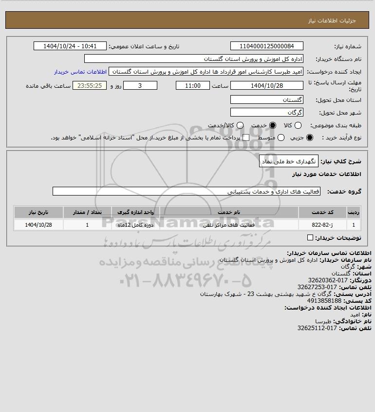 شرح کلی نیاز: نگهداری خط ملی نماد