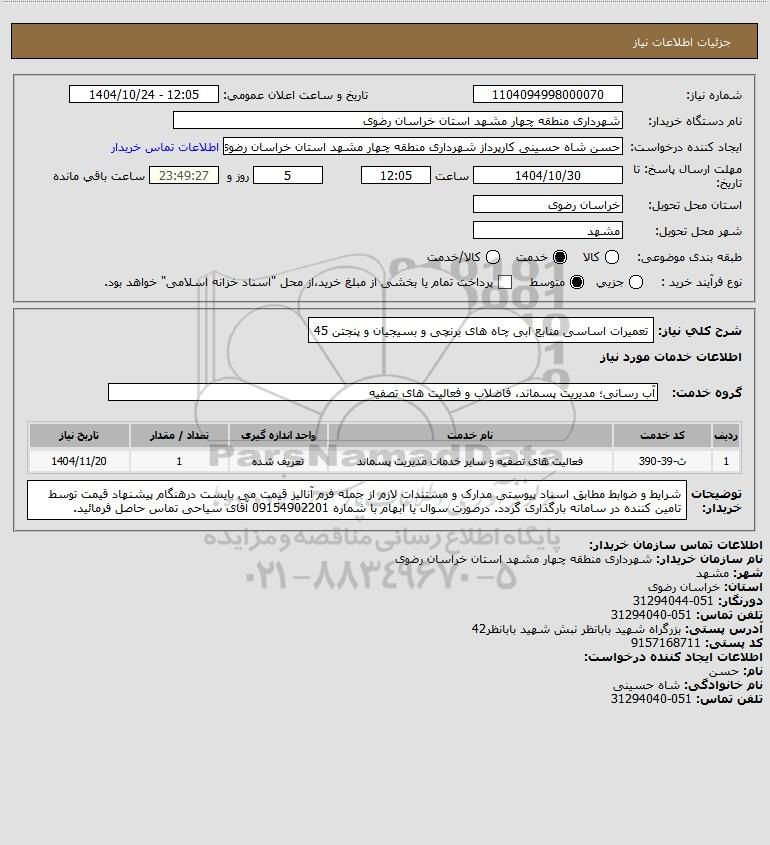 نام دستگاه خریدار:شهرداری منطقه چهار مشهد استان خراسان رضوی